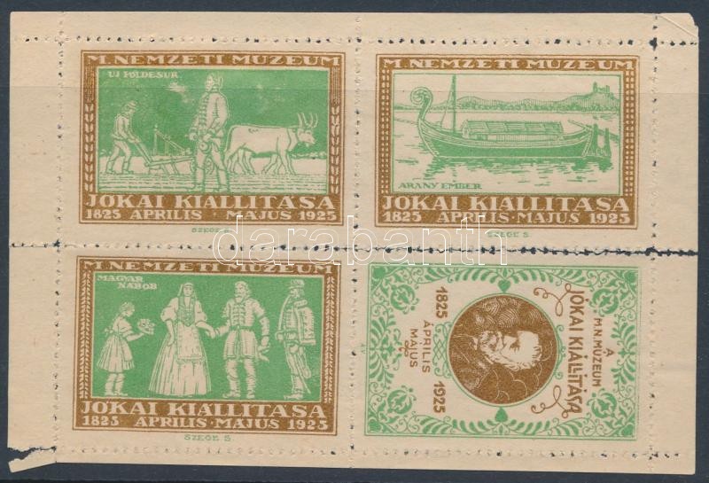 Beschreibung: 1925 Jókai kiállítás levélzáró kisív (fogelválások)
