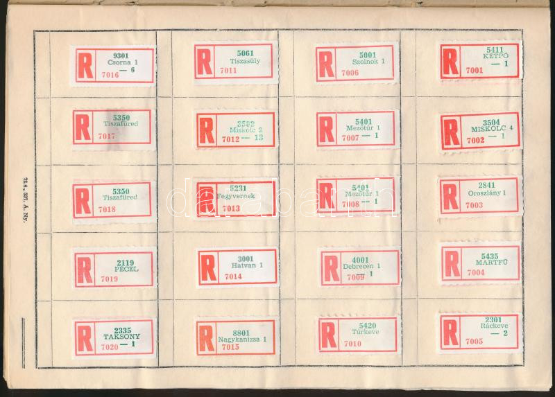 Beschreibung: Irányítószámos ragjegyek sorszám-gyűjteménye 7001-től 8000-ig.