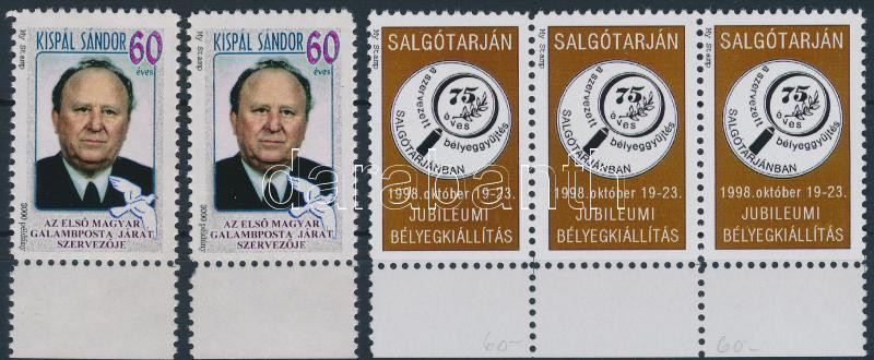 Beschreibung: Kispál Sándor magánbélyeg 2 db + 75 éves a szervezett bélyeggyűjtés Salgótarjánban ívszéli hármascsík