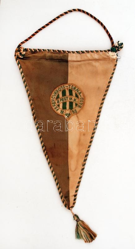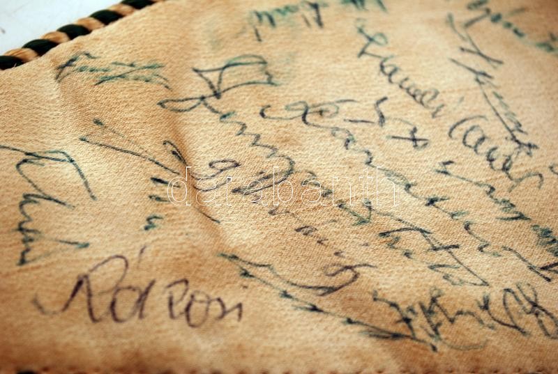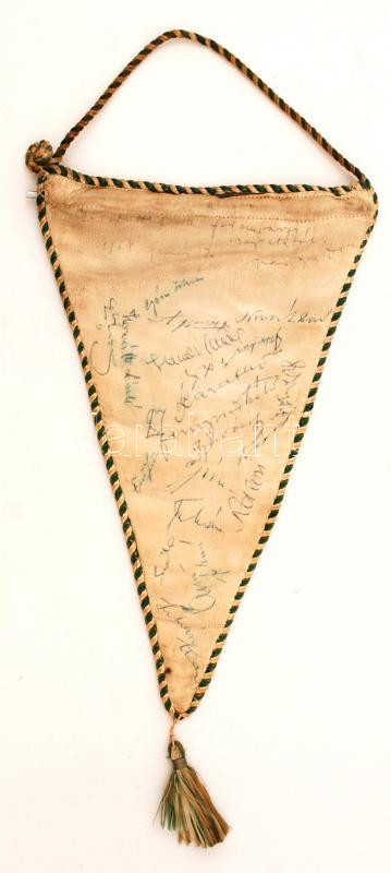 1968 FTC (Fradi) zászló Varga Zoltán dedikációjával, valamint az akkori csapat többi tagjának aláírásával, így köztük Albert Flórián, Szűcs Lajos, Novák Dezső, Fenyvesi Máté, stb.