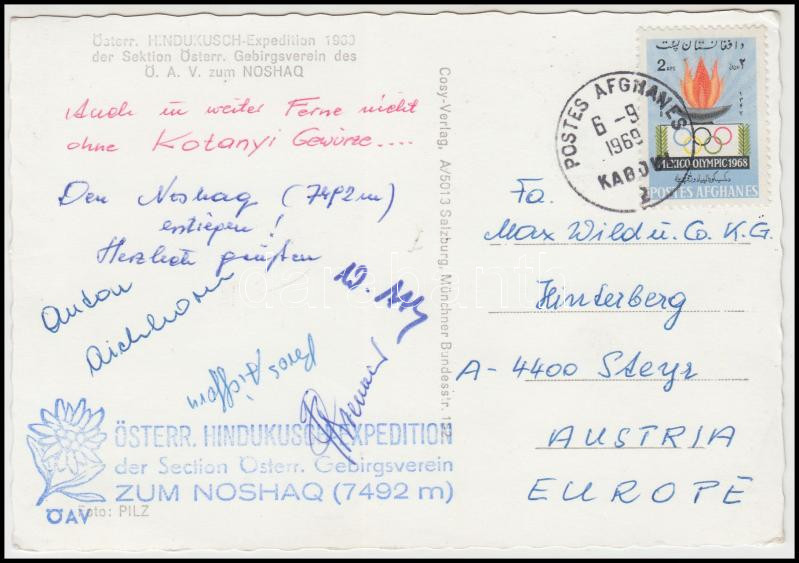 1969 Az osztrák Hindukustan Expedíció tagjai által aláírt képeslap / 1969 Autograph signed postcard of the members of the Austrian Hindukustan Expedition.