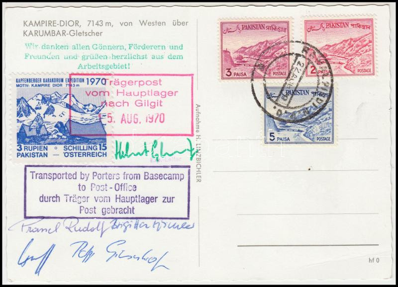1970 Az osztrák Kapfenberger Karakoum Expedíció tagjai által aláírt képeslap / 1970 Autograph signed postcard of the members of the Austrian Kapfenberger Karakoum Expedition.