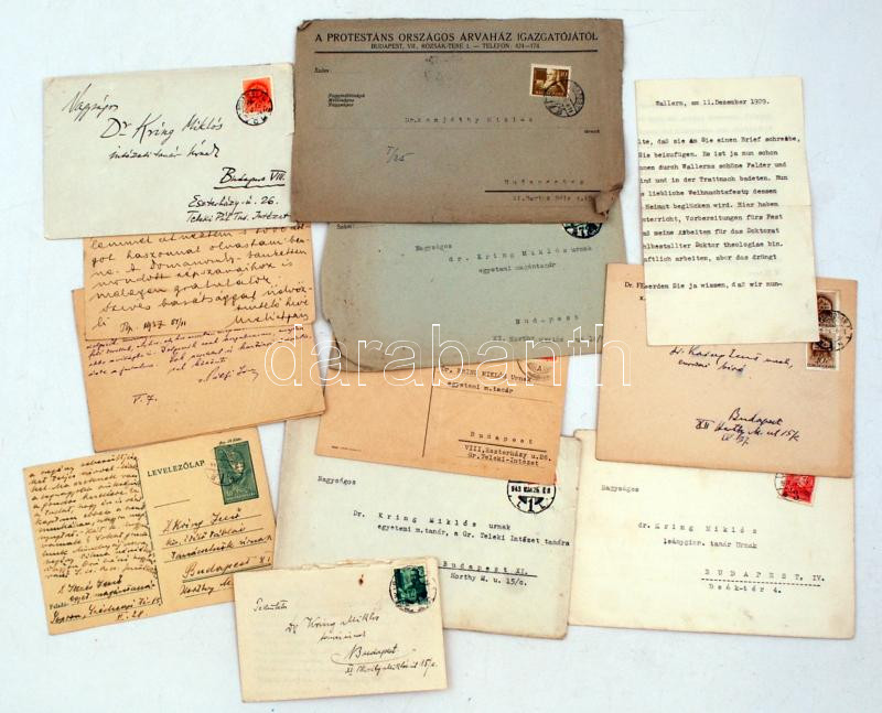Beschreibung: cca 1935-1945 13 db levél, aláírásokkal Komjáthy (Kring) Miklós hagyatékából, tudósoktól, tanároktól stb.