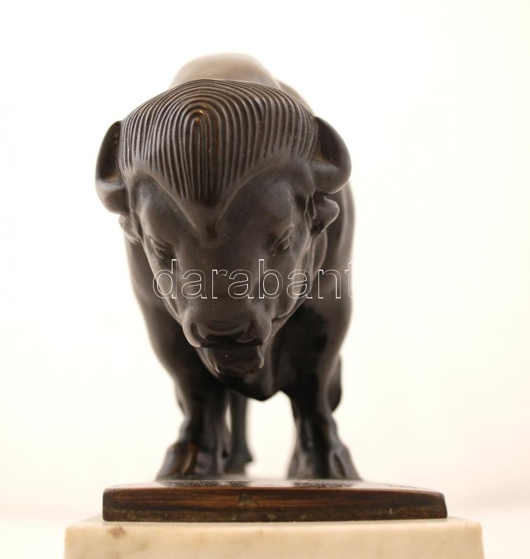 Beschreibung: Bory Jenő (1879-1959): Bölény, bronz szobor, alabástrom talapzaton, jelzett, m: 17 cm