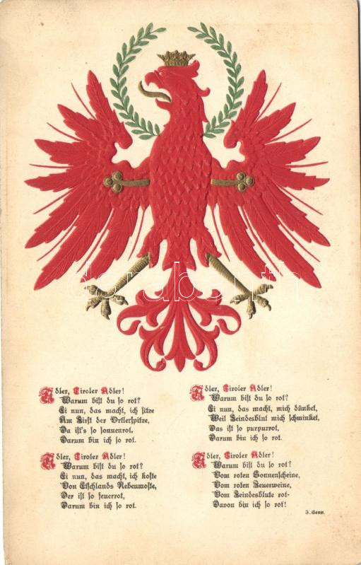 Tiroler Adler / the eagle of Tyrol, coat of arms Emb. patriotic postca... https://www.darabanth.com/de/262-Fernauktion/262.0/Ansichtskarten/Flaggen-Wappen~100108/Tiroler-Adler-the-eagle-of-Tyrol-coat-of-arms-Emb-patriotic-postcard~II1303278