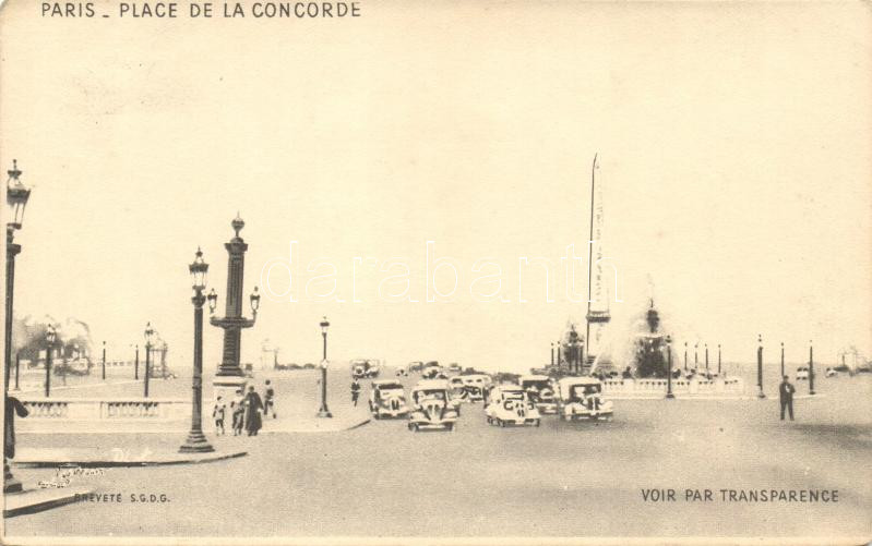 Paris, 'Place de la Concorde' / Concorde square, automobiles... https://www.darabanth.com/de/262-Fernauktion/262.0/Ansichtskarten/Frankreich~100018/Paris-Place-de-la-Concorde-Concorde-square-automobiles-Brevete-SGDG-hold-to-light-non-~II1259890