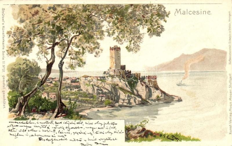 Beschreibung: Malcesine, Hofkunstanstalt Eckstein & Stahle, Strützel's Künstlerkarte Serie II. No. 57. litho s: Otto Strützel