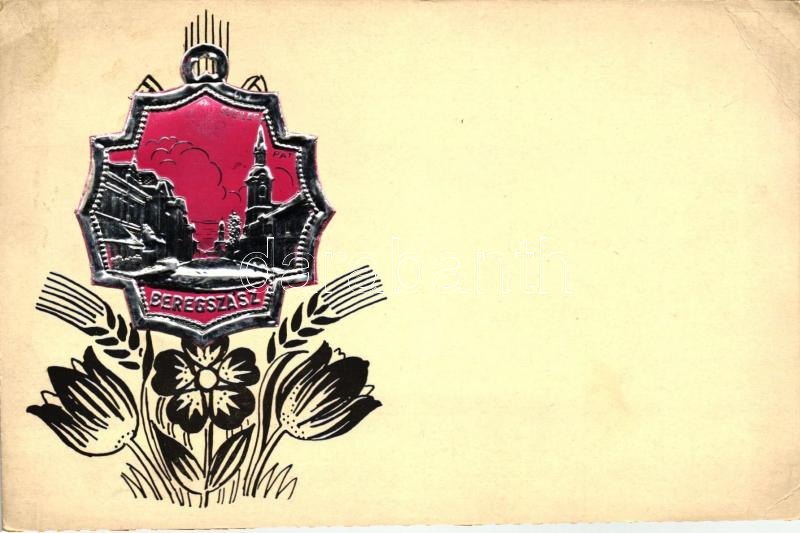 Beschreibung: Beregszász, dombornyomott irredenta képeslap; Fémplakett szab. felelős kiadó Szeiler József / golden Emb. irredenta postcard (EB)