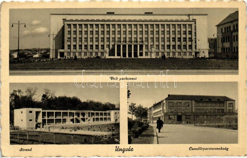 Ungvár, volt parlament, Csendőrparancsnokság, strand / old parliament,... https://www.darabanth.com/de/262-Fernauktion/262.0/Ansichtskarten/Karpatenukraine~100033/Ungvar-volt-parlament-Csendorparancsnoksag-strand-old-parliament-gendarmerie-Command-spa-~II1020213