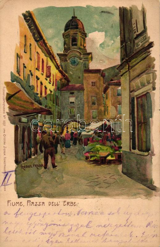 Beschreibung: Fiume, Piazza dell' Erbe / Zöldség piac / vegetable market; Künstlerpostkarte No. 1137. von Ottmar Zieher, litho s: Raoul Frank