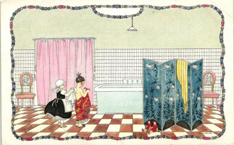 Girl in bathroom, M. Munk No. 1232, litho s: Mela Koehler (EB) https://www.darabanth.com/de/262-Fernauktion/262.0/Ansichtskarten/Kunstlerkarten~100091/Girl-in-bathroom-M-Munk-No-1232-litho-s-Mela-Koehler-EB~II1271372