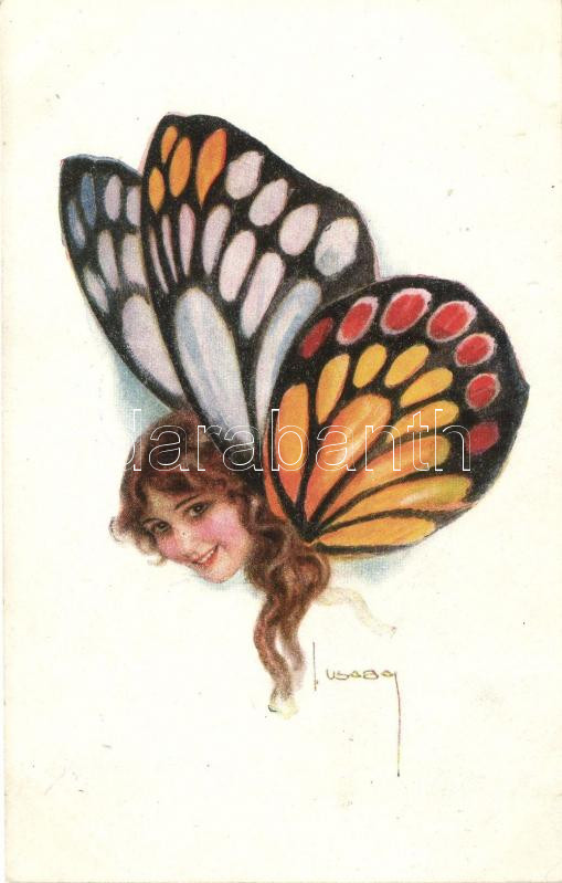 Lady's head with butterfly wings, bizarre, Erkal No. 363/4., s: U... https://www.darabanth.com/de/262-Fernauktion/262.0/Ansichtskarten/Kunstlerkarten~100091/Ladys-head-with-butterfly-wings-bizarre-Erkal-No-3634-s-Usabal~II1303878