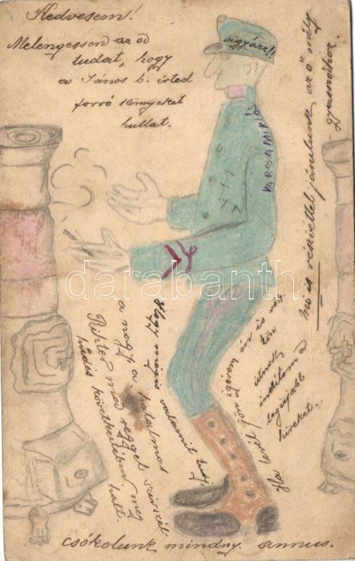Magyar honvéd / Hungarian soldier, hand-painted postcard 5 Fillér Ga. https://www.darabanth.com/de/262-Fernauktion/262.0/Ansichtskarten/Militaria~400052/Magyar-honved-Hungarian-soldier-hand-painted-postcard-5-Filler-Ga~II1303263