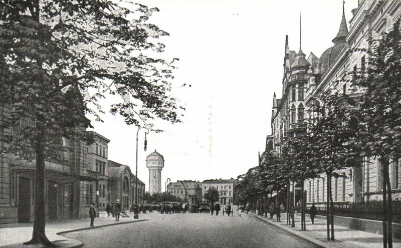 Beschreibung: Katowice, Kattowitz; Bahnhofstrasse, Wasserturm / street of the railway station, water tower