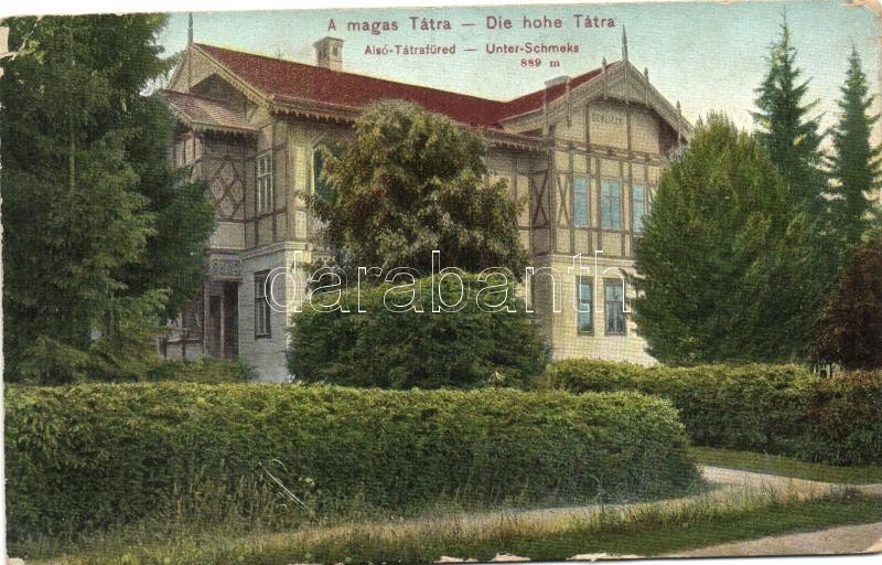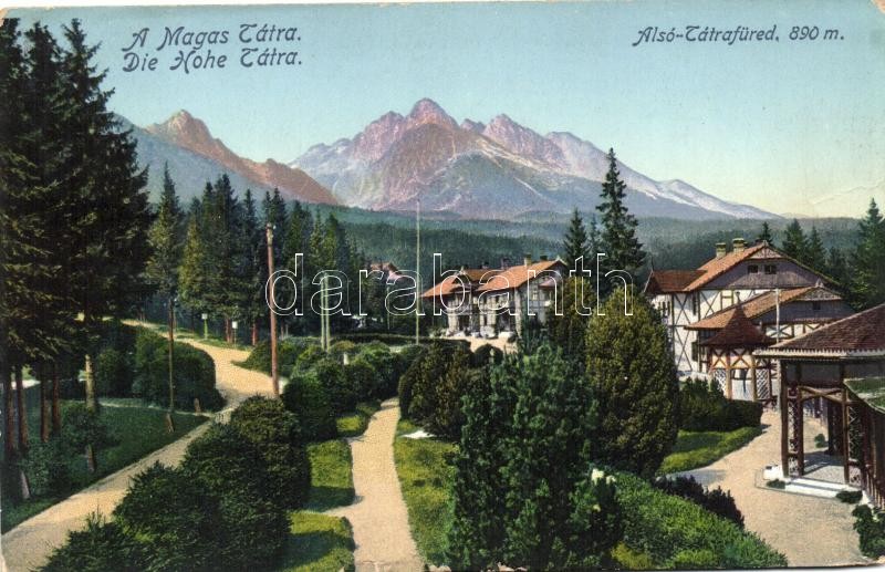 11 db RÉGI, színes városképes képeslap a Tátrából, többek között Alsó-Tátrafüred, Poprád tó és Tátralomnic, vegyes minőség / 11 old, color town view postcards from the Tatra, among them Dolny Smokovec, Popradské pleso, Tatranská Lomnica, mixed quality