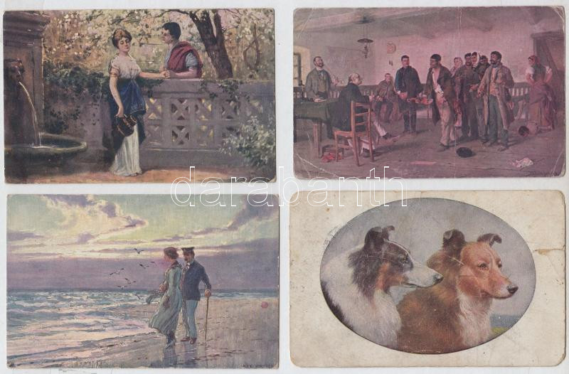 95 db RÉGI motívumlap, vegyes minőség, pár litho; művész, hölgyek, vallás, gyerek / 95 old motive cards, mixed quality, some litho; art, ladies, religion, children