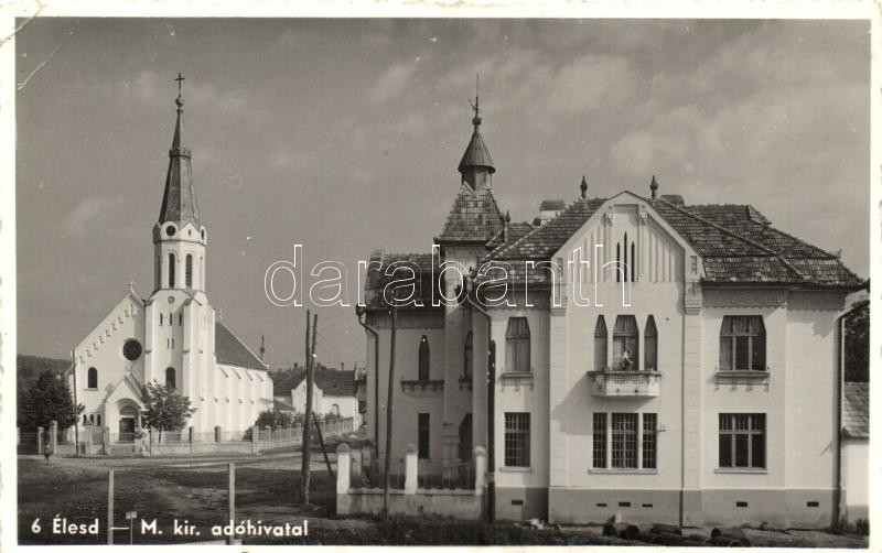 Élesd, Alesd; Magyar királyi Adóhivatal, templom / tax office, church ... https://www.darabanth.com/de/262-Fernauktion/262.0/Ansichtskarten/Siebenburgen~100025/Elesd-Alesd-Magyar-kiralyi-Adohivatal-templom-tax-office-church-EK~II1263117