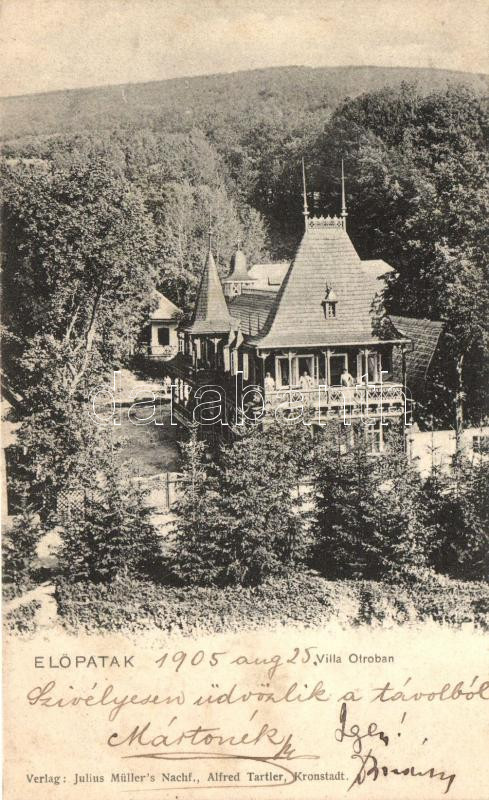 Előpatak, Valcele; Otroban villa / villa (ázott sarok / wet corner) https://www.darabanth.com/de/262-Fernauktion/262.0/Ansichtskarten/Siebenburgen~100025/Elopatak-Valcele-Otroban-villa-villa-azott-sarok-wet-corner~II1263025