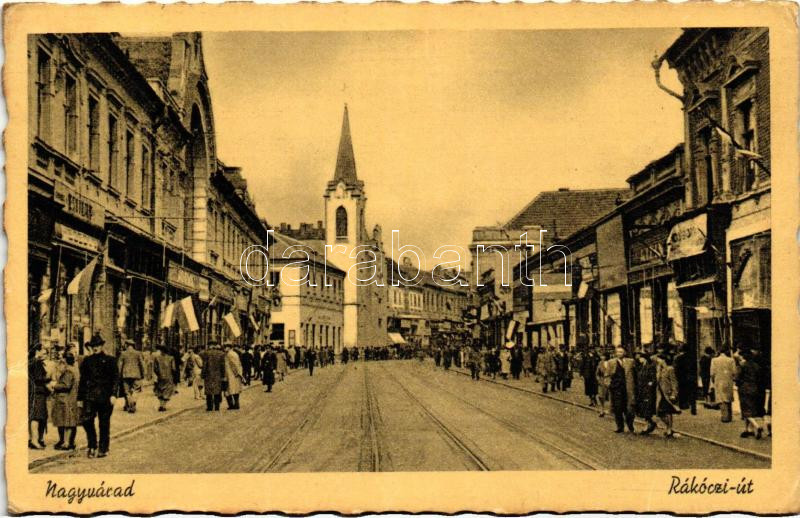 Nagyvárad, Oradea; Rákóczi út, templom / street, church https://www.darabanth.com/de/262-Fernauktion/262.0/Ansichtskarten/Siebenburgen~100025/Nagyvarad-Oradea-Rakoczi-ut-templom-street-church~II1301090