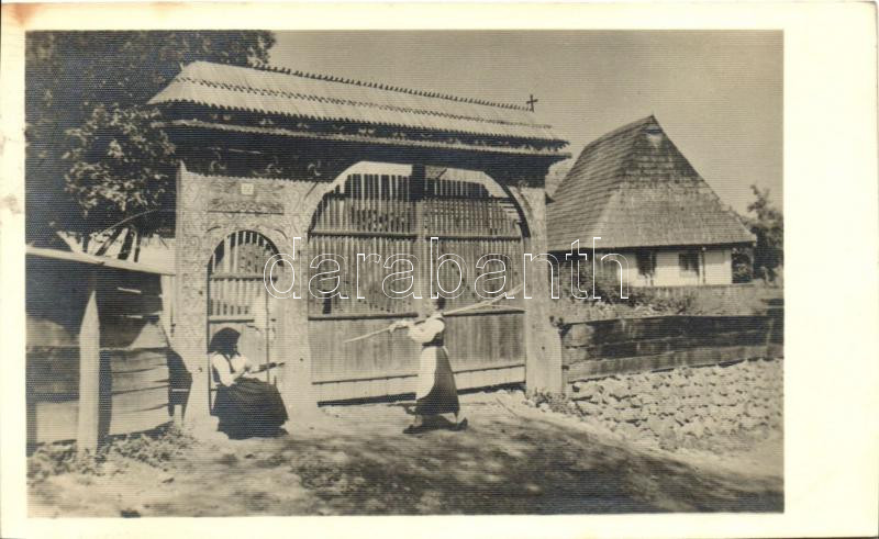 Beschreibung: Székelypálfalva, Pálfalva, Pauleni; Székely kapu, Joanovics utóda fényképészeti műterem / gate (ragasztónyom / gluemark)