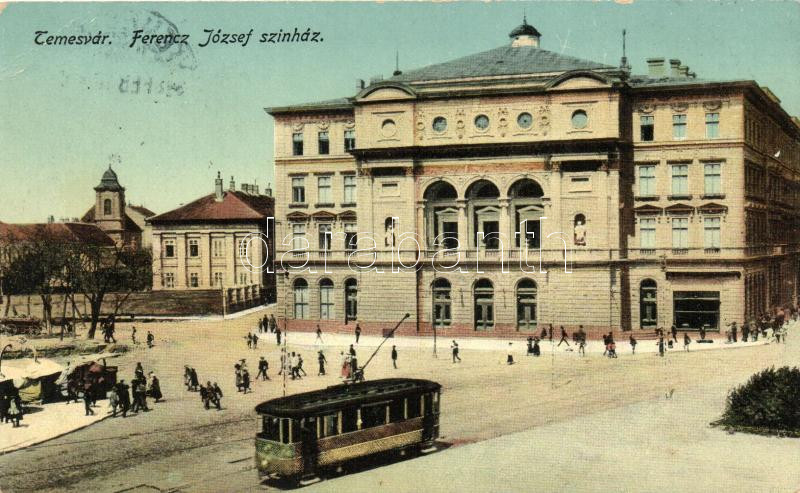 Temesvár, Timisoara; Ferencz József színház, villamos / theatre, tram ... https://www.darabanth.com/de/262-Fernauktion/262.0/Ansichtskarten/Siebenburgen~100025/Temesvar-Timisoara-Ferencz-Jozsef-szinhaz-villamos-theatre-tram-EK~II1303172