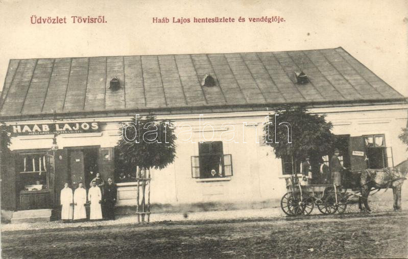 Tövis, Teius; Haáb Lajos mészáros és hentesüzlete és vendéglője; Szilá... https://www.darabanth.com/de/262-Fernauktion/262.0/Ansichtskarten/Siebenburgen~100025/Tovis-Teius-Haab-Lajos-meszaros-es-hentesuzlete-es-vendegloje-Szilagyi-Arthur-kiadasa-~II1303024
