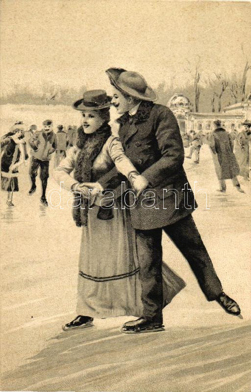 Ice skating couple, litho https://www.darabanth.com/de/262-Fernauktion/262.0/Ansichtskarten/Sport~100097/Ice-skating-couple-litho~II1264610