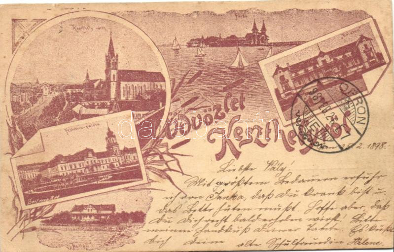 1898 Keszthely, város, fürdő, Festetics-palota, a 'Hullám' é... https://www.darabanth.com/de/262-Fernauktion/262.0/Ansichtskarten/Ungarn~100023/1898-Keszthely-varos-furdo-Festetics-palota-a-Hullam-es-Balaton-szallok-kis-szakada~II1299659