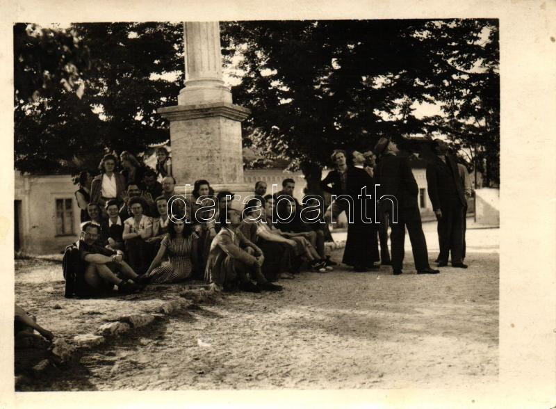 1948 Sümeg, kirándulók csoportképe oszlopnál, photo https://www.darabanth.com/de/262-Fernauktion/262.0/Ansichtskarten/Ungarn~100023/1948-Sumeg-kirandulok-csoportkepe-oszlopnal-photo~II1264882