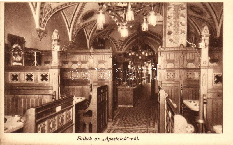 Beschreibung: Budapest V. Förster Miklós és Förster Pál sörözője az Apostolokhoz, fülkék, belső; Kigyó utca 6. (EK)