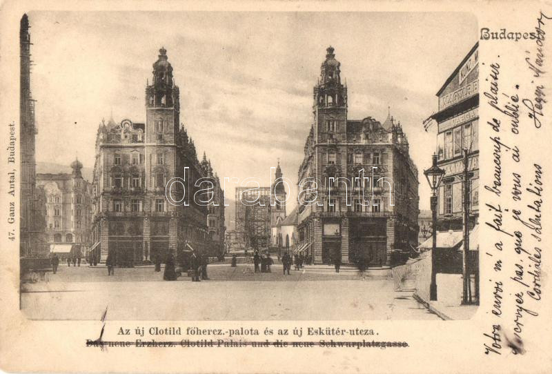 Budapest V. Klotild főhercegi palota és az új Eskütér utca, épülő Erzs... https://www.darabanth.com/de/262-Fernauktion/262.0/Ansichtskarten/Ungarn~100023/Budapest-V-Klotild-fohercegi-palota-es-az-uj-Eskuter-utca-epulo-Erzsebet-hid-kiadja-Gan~II1303009