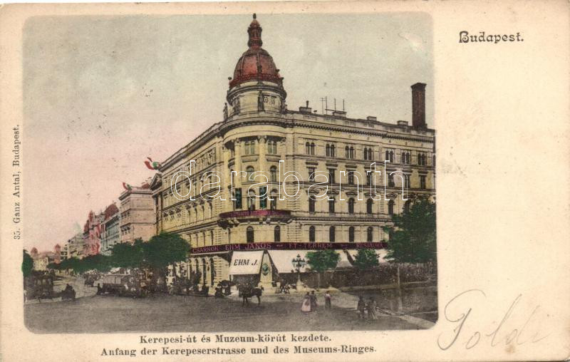 Budapest VIII. Kerepesi út és a Múzeum-körút kezdete, Ehm János étterm... https://www.darabanth.com/de/262-Fernauktion/262.0/Ansichtskarten/Ungarn~100023/Budapest-VIII-Kerepesi-ut-es-a-Muzeum-korut-kezdete-Ehm-Janos-etterme--kiadja-Ganz-Antal-~II1303412