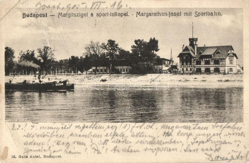 Beschreibung: Budapest XIII. Margitsziget, sporttelep, kiadja Ganz Antal (EB)