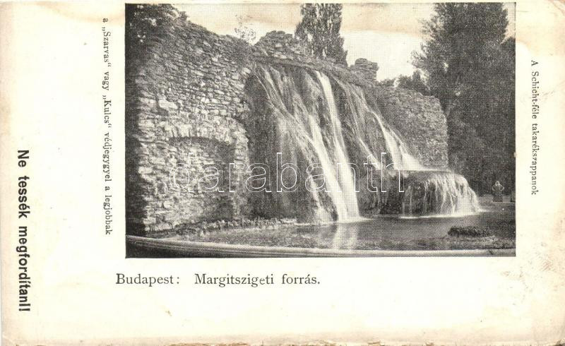 Beschreibung: Budapest XIII. Margitszigeti forrás, hátoldalon Schicht-féle szappan reklám (EK)