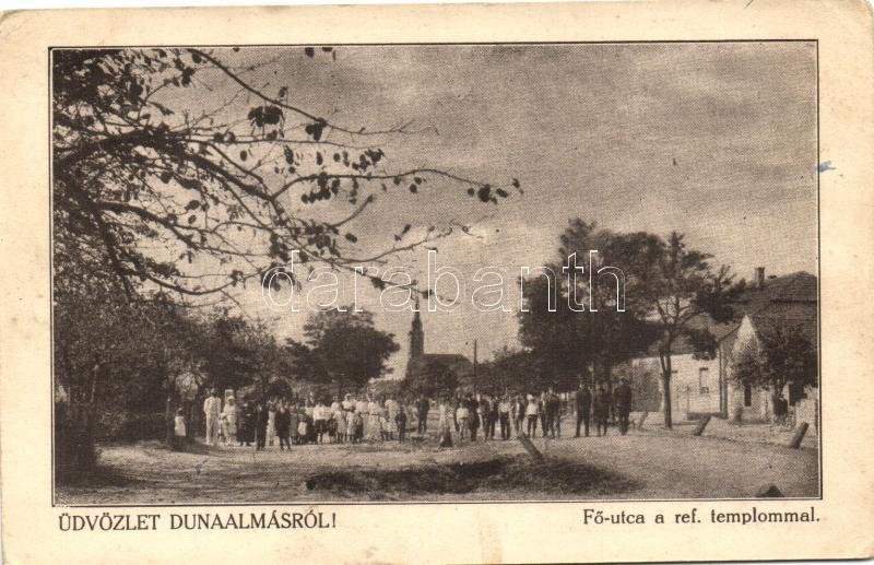 Dunaalmás, Fő utca, református templom, kiadja Szilágyi Arthur (EK) https://www.darabanth.com/de/262-Fernauktion/262.0/Ansichtskarten/Ungarn~100023/Dunaalmas-Fo-utca-reformatus-templom-kiadja-Szilagyi-Arthur-EK~II1303780