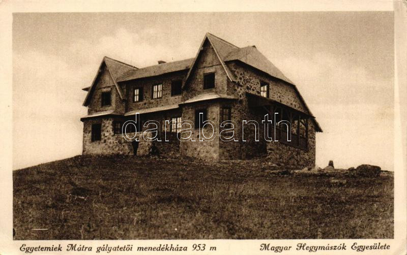Beschreibung: Galyatető, Mátra, A Magyar Hegymászók Egyesületének 'Egyetemiek' menedékháza; kiadja Klauber János (EK)