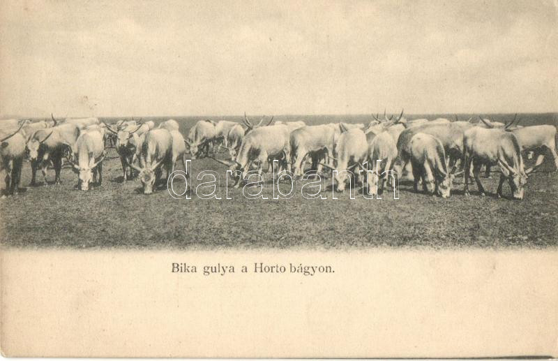 Hortobágy, Bika gulya a Hortobágyon, kiadja R. Mosinger https://www.darabanth.com/de/262-Fernauktion/262.0/Ansichtskarten/Ungarn~100023/Hortobagy-Bika-gulya-a-Hortobagyon-kiadja-R-Mosinger~II1303332
