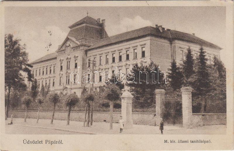 Pápa, Állami tanítóképző; kiadja a Pápai Versenyáruház https://www.darabanth.com/de/262-Fernauktion/262.0/Ansichtskarten/Ungarn~100023/Papa-Allami-tanitokepzo-kiadja-a-Papai-Versenyaruhaz~II1071108