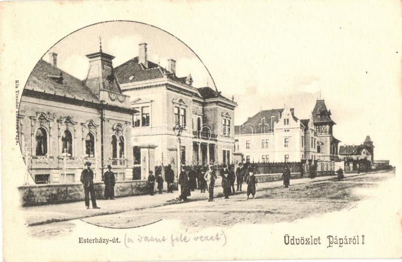 Pápa, a vasút felé vezető Esterházy út https://www.darabanth.com/de/262-Fernauktion/262.0/Ansichtskarten/Ungarn~100023/Papa-a-vasut-fele-vezeto-Esterhazy-ut~II1303085