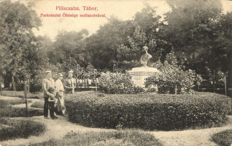 Beschreibung: Piliscsaba, Tábor, park, Ferenc József szobor, Ujhelyi Lajos kiadása (EK)