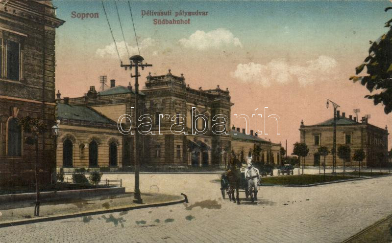 Sopron, Déli vasúti pályaudvar (fl) https://www.darabanth.com/de/262-Fernauktion/262.0/Ansichtskarten/Ungarn~100023/Sopron-Deli-vasuti-palyaudvar-fl~II1262960