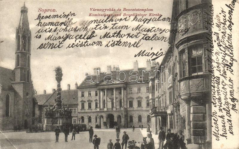 Sopron, Vármegyeház, Bencés-templom, kiadja Blum N. (EK) https://www.darabanth.com/de/262-Fernauktion/262.0/Ansichtskarten/Ungarn~100023/Sopron-Varmegyehaz-Bences-templom-kiadja-Blum-N-EK~II1262564