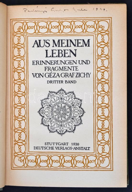 Graf Geza Zichy: Aus Meinem Leben III. Stuttgart, 1920, Deutsche Verla... https://www.darabanth.com/de/262-Fernauktion/262.0/Bucher/Bucher-Andere-Sprachen~41/Graf-Geza-Zichy-Aus-Meinem-Leben-III-Stuttgart-1920-Deutsche-Verlags-Anstalt-Kiadoi-gerincen~II1300862