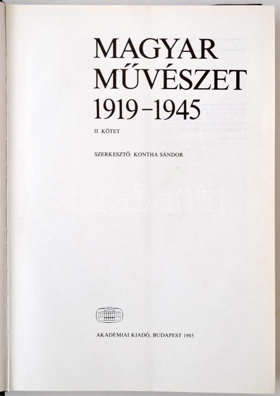 Kontha Sándor (szerk.): Magyar Művészet 1919-45, Bp., 1985., Akadémiai... https://www.darabanth.com/de/262-Fernauktion/262.0/Bucher/Bucher-Architektur-Kunst~32/Kontha-Sandor-szerk-Magyar-Muveszet-1919-45-Bp-1985-Akademiai-Kiadoi-egeszvaszon-kC3~II1303645