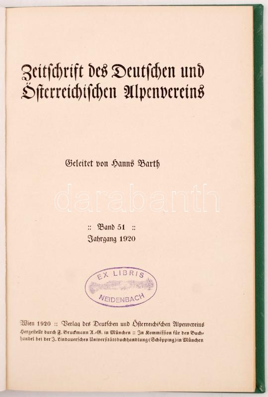 Zeitschrift des Deutschen und Österreichisen Alpenverein. 1920. Innsbruck, 1920. Verlag des D. und Ö. Alpenvereins. Nagyon sok képpel. Modern egészvászon kötésben, szép állapotban / With many illustrations, in modern full linen binding, in nice condition.