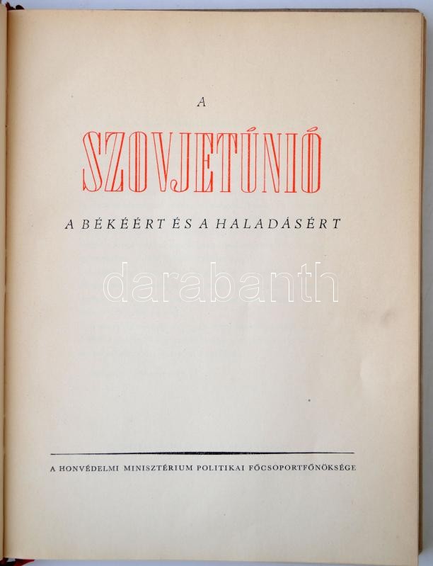 A Szovjetúnió a békéért és a haladásért. Készült a Nagy Októberi Szocialista Forradalom 33. évfordulójára. Bp., 1950, A Honvédelmi Minisztérium Politikai Főcsoportfőnöksége. 208 p. Kiadói egészvászon-kötésben, számos illusztrációval.