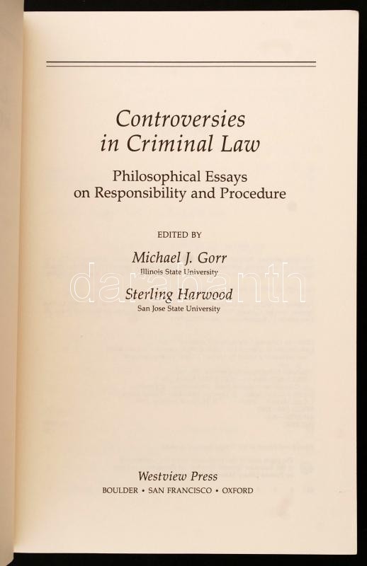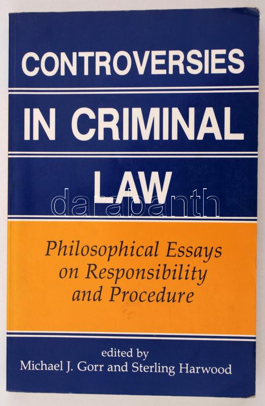 Controversies in Criminal Law. Philosophical Essays on Responsibility and Procedure. Edited by Michael J. Gorr and Sterling Harwood. Boulder, 1992, Westview. 272 p. Kiadói papírkötésben. / Paperback edition in good condition.