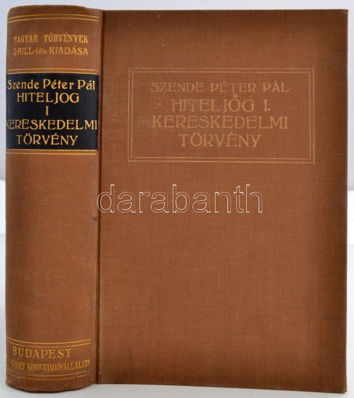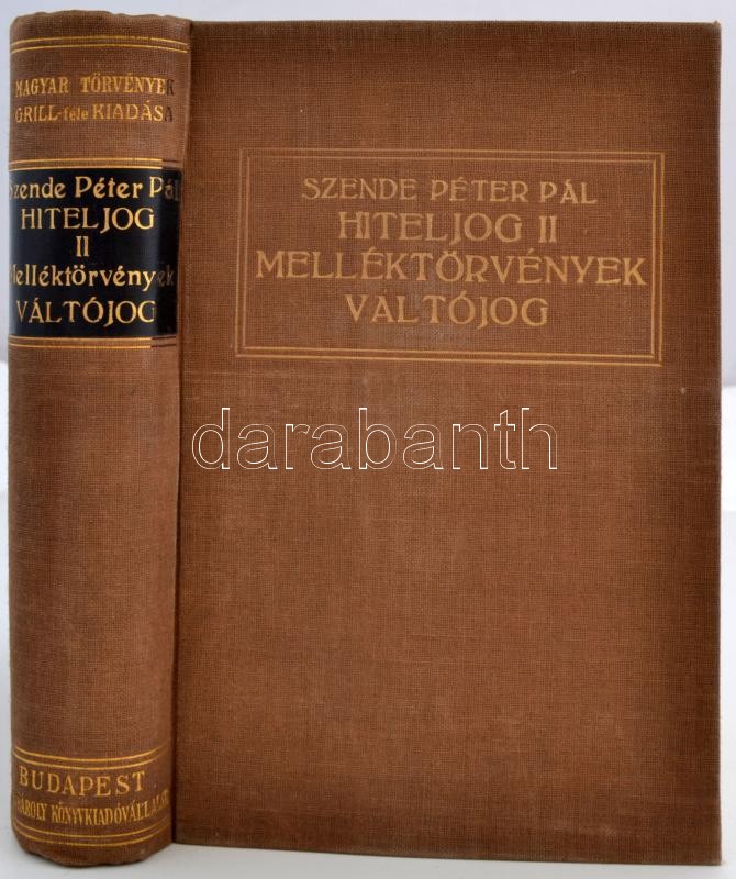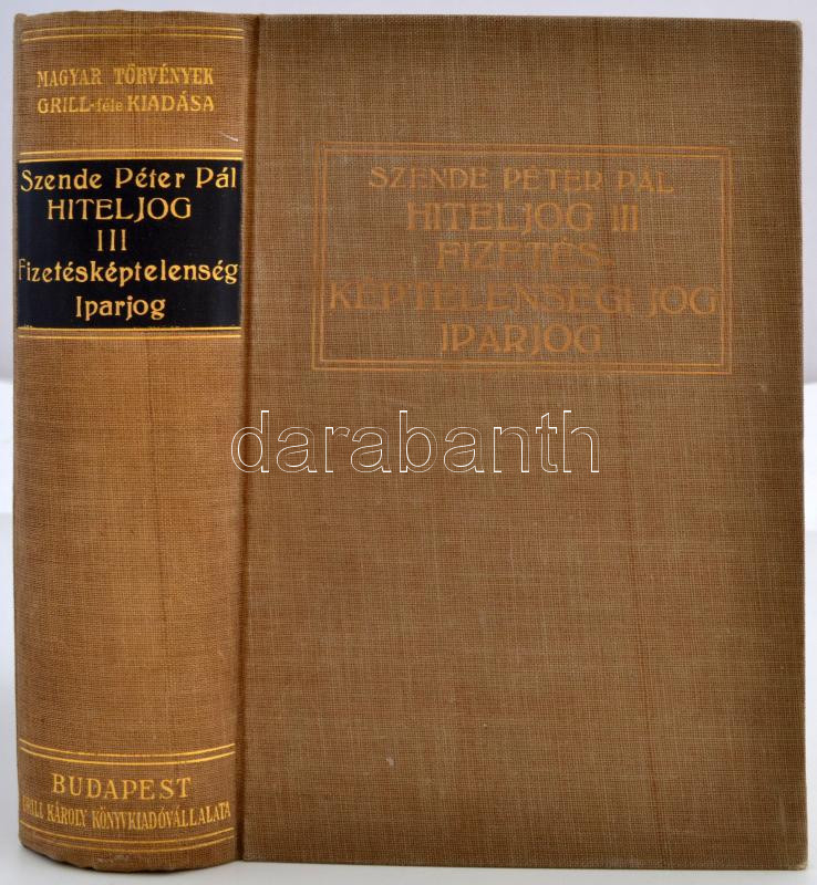 Szende Péter Pál: Magyar hiteljog. I-III. kötet. Bp. 1929-1930. Grill. 792+ 677+877 l. Magyar törvények Grill-féle kiadása. Aranyozott kiadói egészvászon-kötésben. Erős kötésű, szép példányok.