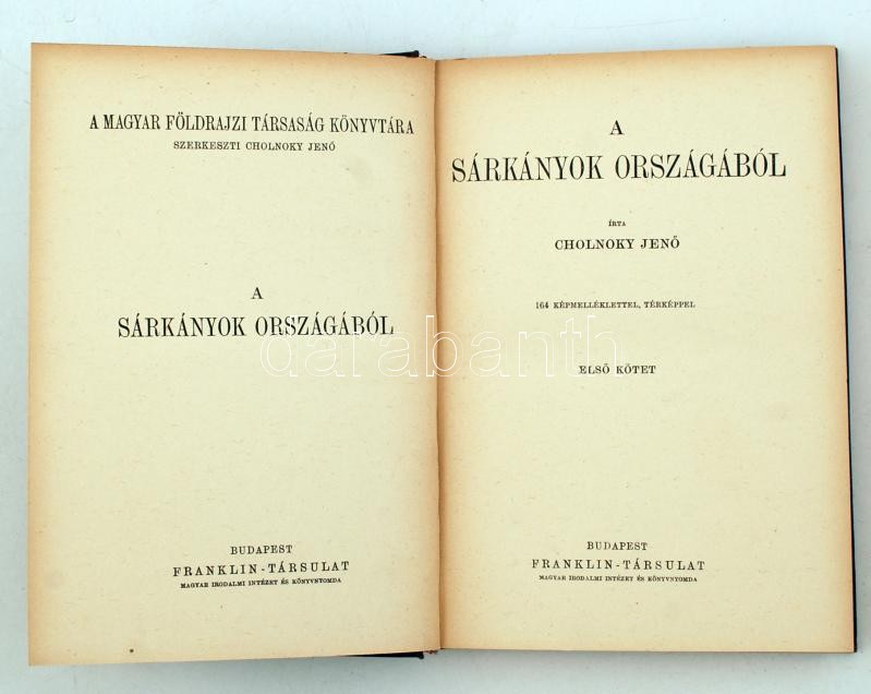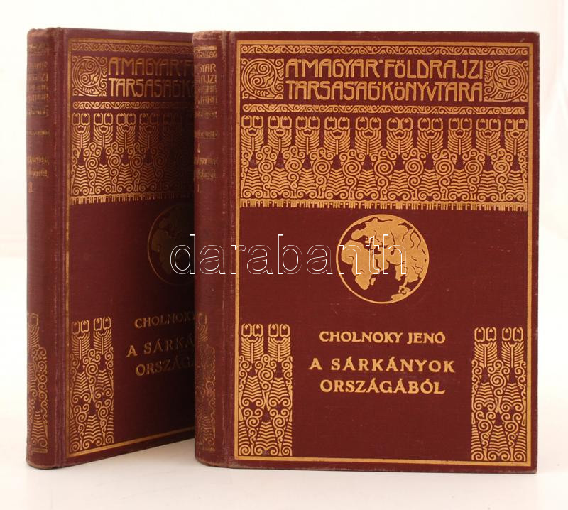 Cholnoky Jenő: A sárkányok országából. I-II. kötet. 164 képmelléklettel és 4 térképpel. A Magyar Földrajzi Társaság Könyvtára. Bp., é.n., Franklin. Kiadói aranyozott egészvászon sorozatkötésben, szép állapotban.