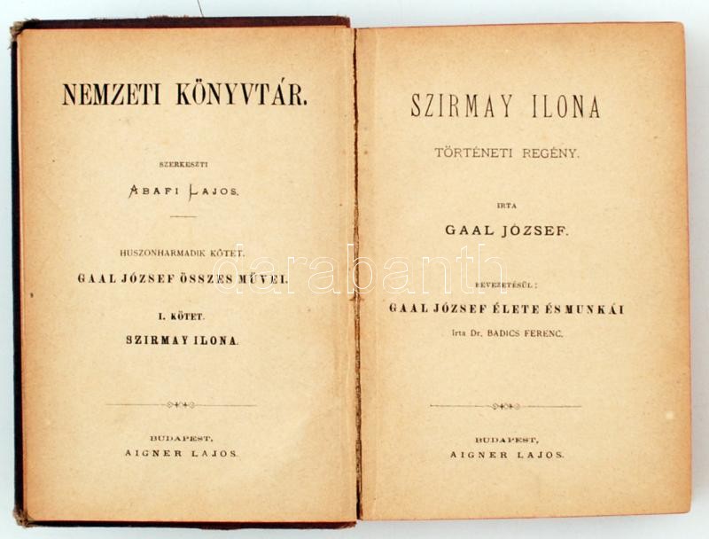 Gaal József: Szirmay Ilona történeti regény. Nemzeti Könyvtár. Budapes... https://www.darabanth.com/de/262-Fernauktion/262.0/Bucher/Bucher-Religion~40/Gaal-Jozsef-Szirmay-Ilona-torteneti-regeny-Nemzeti-Konyvtar-Budapest-1881-Aigner-Lajos-K~II1094375